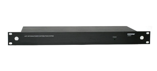 一組のアンテナを複数の受信機に分配し、ワイヤレス・マイクロホン・システムを拡張するアンテナ分配システムです。RF信号を増幅し、信号出力を複数の出力に分割する際に起こるインサーションロスを補償します。